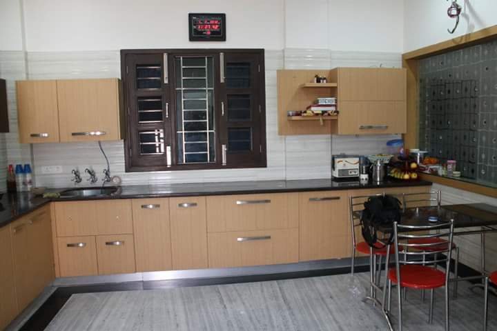 It is a slight modification of a Line Kitchen but gives you extra space for storage and mounting your appliances or kitchen wares. The extended smaller leg of your L-Shaped kitchen is ideal for turning into a small dining mount too. All you need to do is to put a couple of chair, like one or two on the other end of the smaller leg. Or you can install your L-Shaped kitchen using two adjacent walls which will give you extra storage options and lot of free space to work on and experiment with. Just like the Line Kitchen, L-Shaped kitchen too is compact and smart enough to be installed into your fully furnished living room. You can organize a small get together or tea party and attend your guest’s right from your kitchen. It’s all comfortable as well as smart option for medium size rooms.